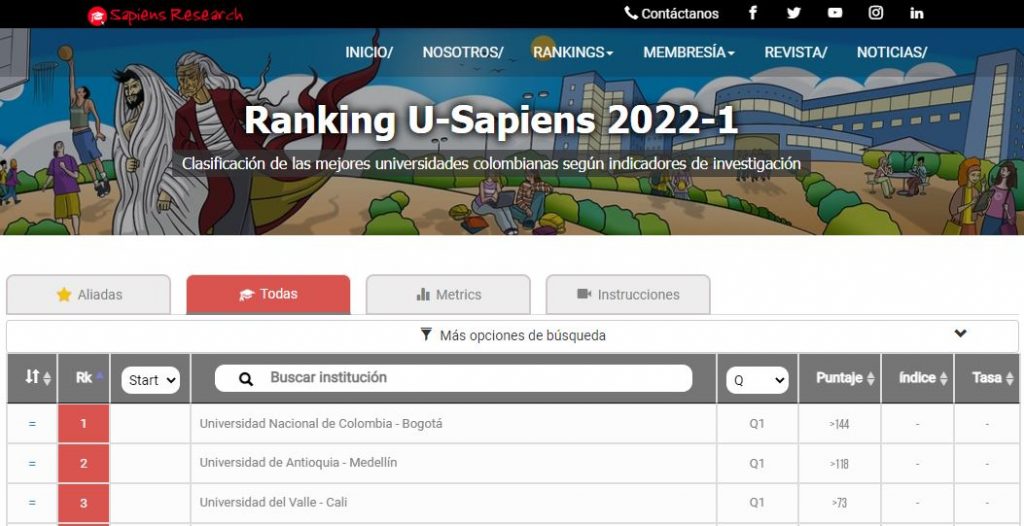 El Ranking U-Sapiens es la clasificación de las mejores IES colombianas según indicadores de investigación, el cual se publica cada semestre desde 2011-1. En esta versión […]