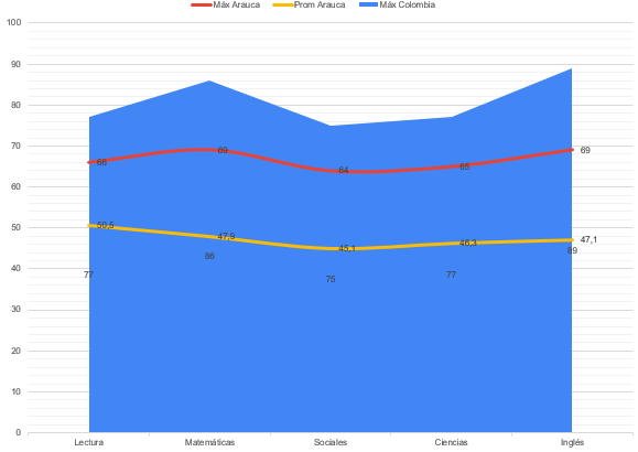 En primer lugar, el promedio ponderado de los promedios en arauca estuvo en 47,4; es decir, 32,1 puntos por debajo del promedio que generaron los máximos resultados del país.